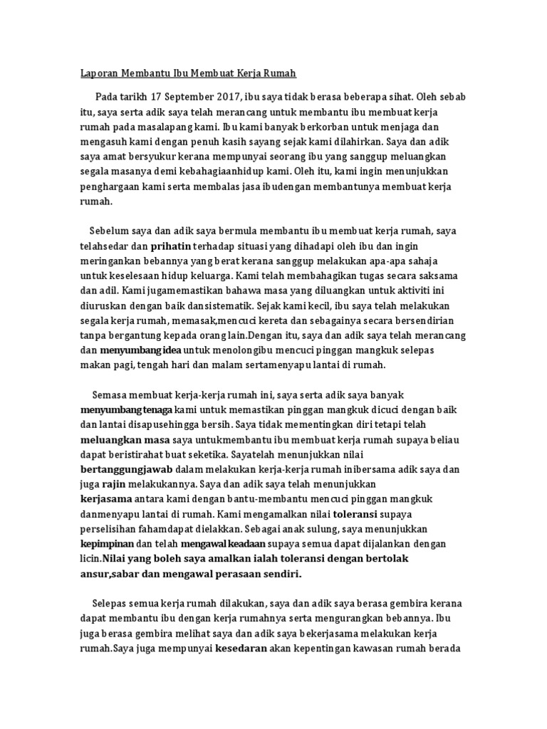 Contoh Karangan Kebaikan Membantu Ibu Bapa